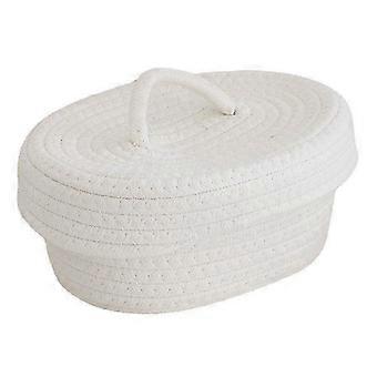 Desktop Storage Box with Lid Handmade Cotton Rope Storage Basket for Makeup Sundries Snack,White