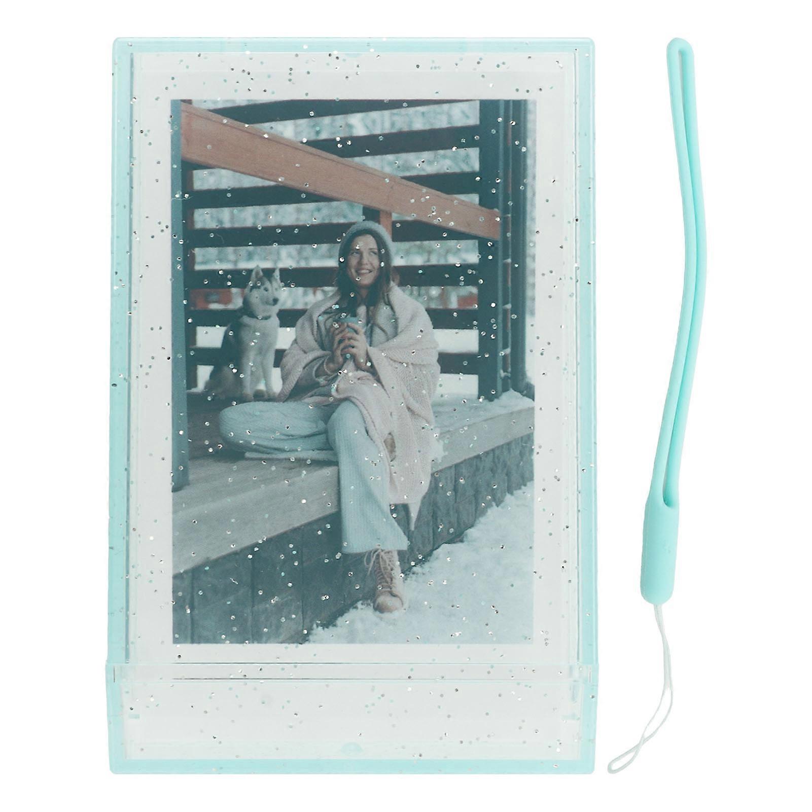 Photo Storage Box for 3 Inch Instant Camera Photo PC Mini Photo Holder Case with Hand Rope for Pictures Cards Green Transparent Glitter