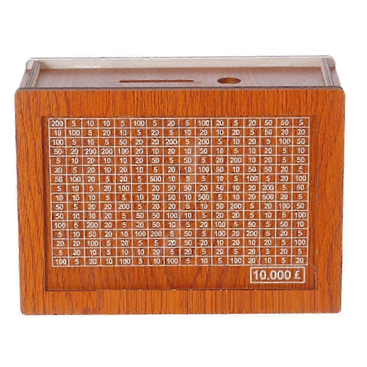 Money Saving Box, Wooden Cash Vault for Kids and Adults, Reusable Money Box with Countdown and Money Target 10000