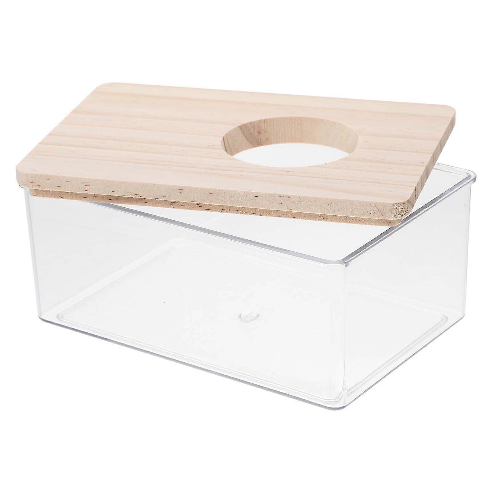 Hamster Sand Bath Box Transparent Acrylic Small Animals Shower Bathtub with Wood Lid