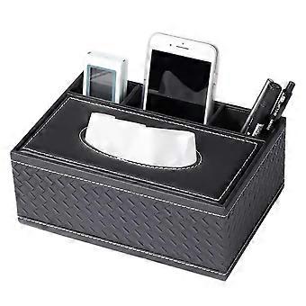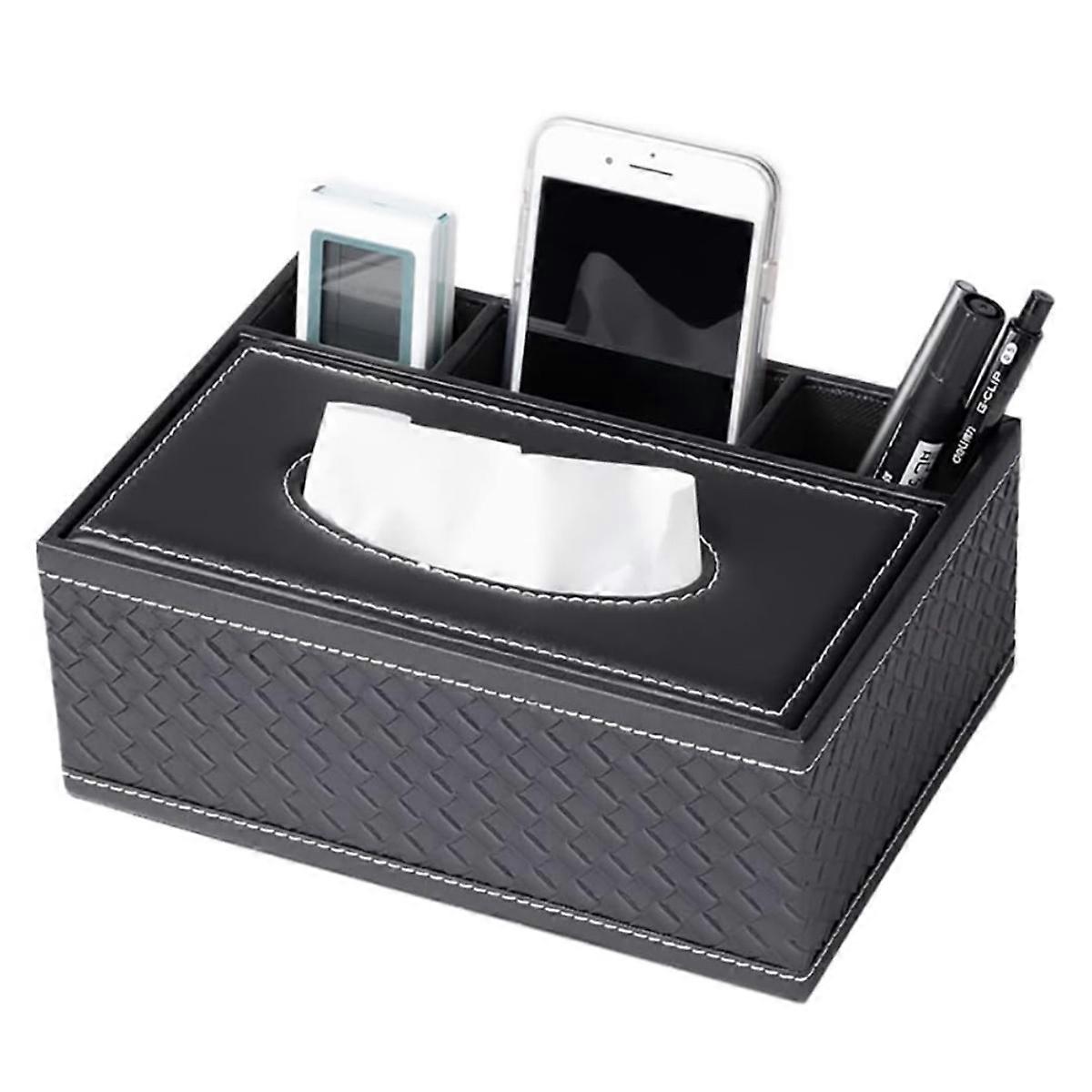 Handkerchief box black tissue box rectangular handkerchief organizer storage box PU leather handkerchief dispenser for home office bathroom living roo