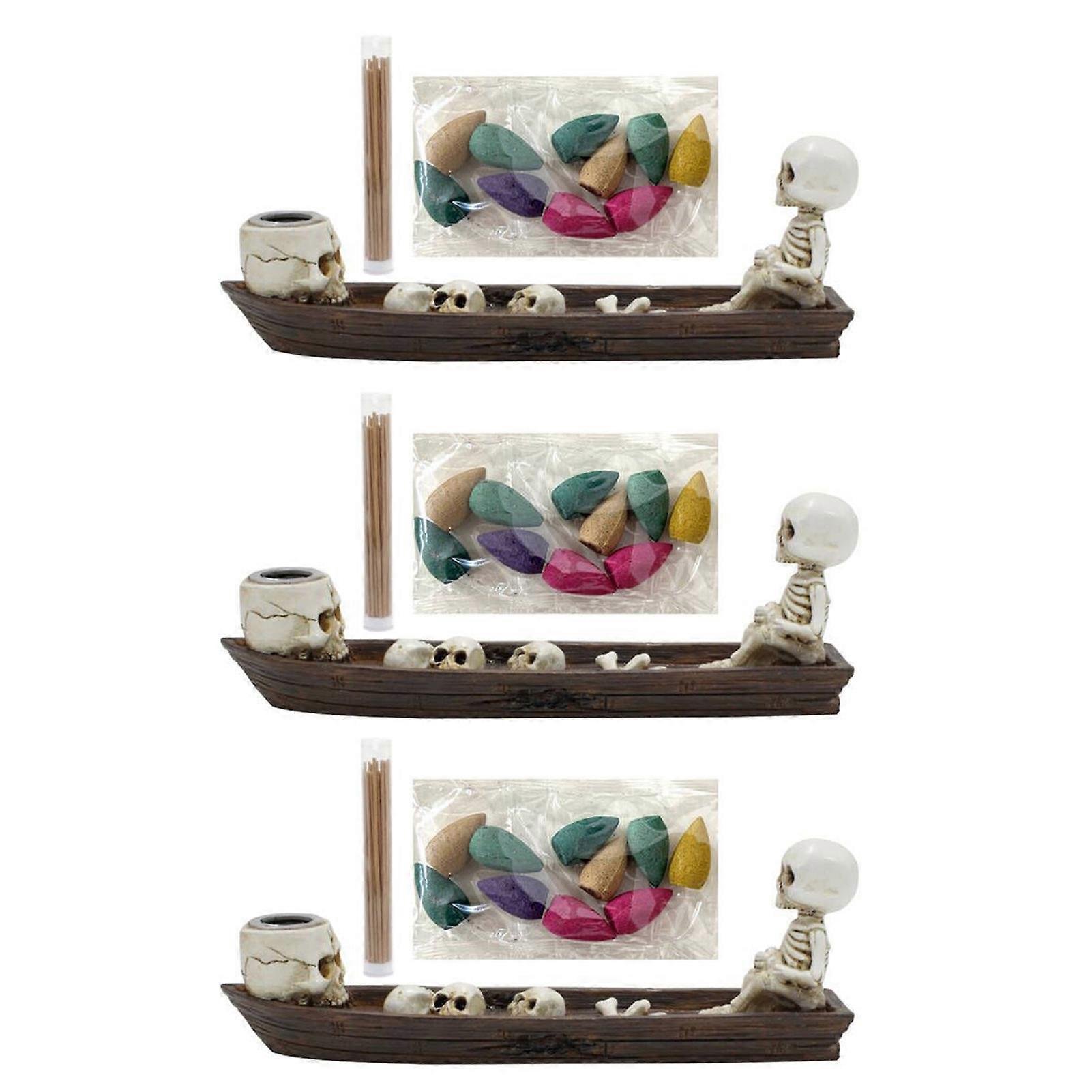 Skull Boat Incense Holder Gothic Resin Figurine Halloween Party Decor for Office Room Desk Ornament