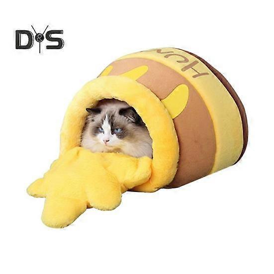 Honey Pot Cat Bed Winter Warm Cat Sleeping Bag Semi-Fixed Cartoon Cat Bed Cave Soft Pet Tent Nest for Kittens And Puppies