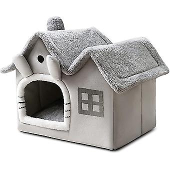 Cat Cave Bed, Warm And Cosy Plush Cat Igloo, Washable Dog Bed With Removable Pillow Cushion(M, Grey)