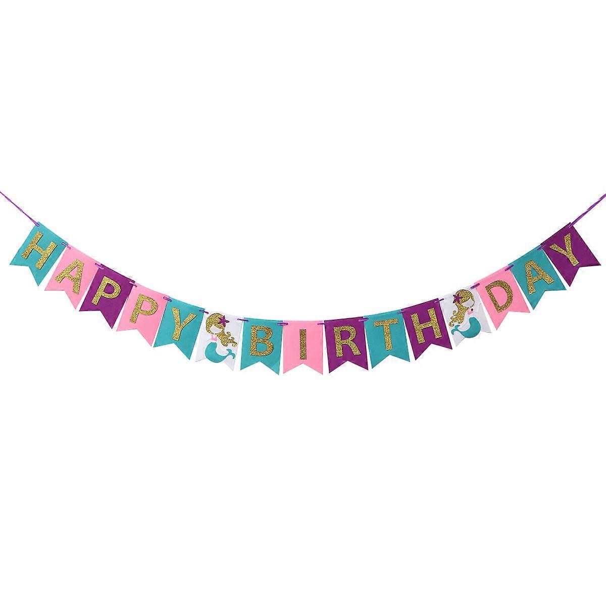 Birthday Banner Hanging Garland for Decoration 3Pcs Mermaid Birthday Banner