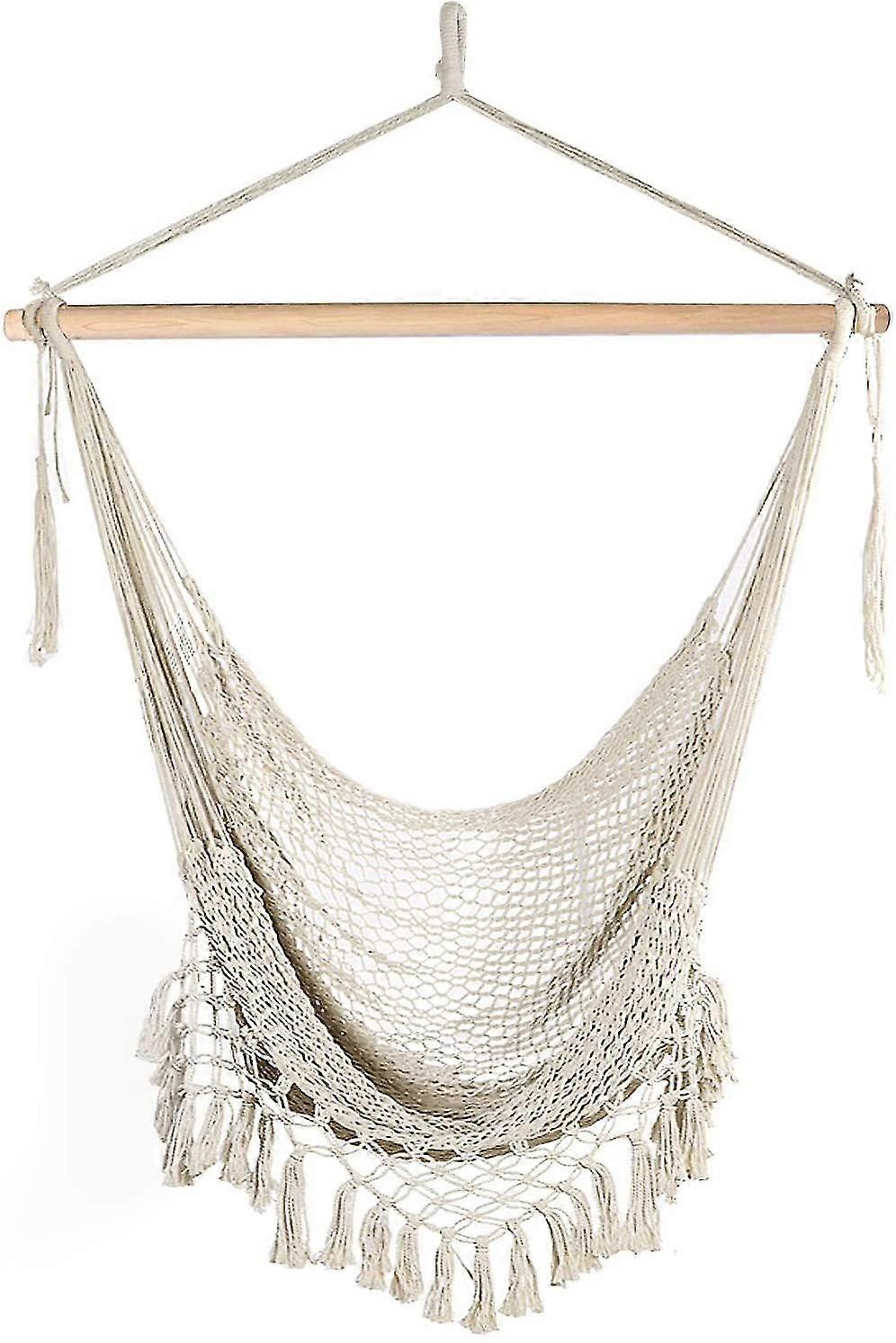 Hanging Chair Super Large Hanging Chair Soft Spun Cotton Rope Loom Hardwood Spreader Bar Wide Seat Pointed Rocking Chair Indoor Outdoor Garden Themed