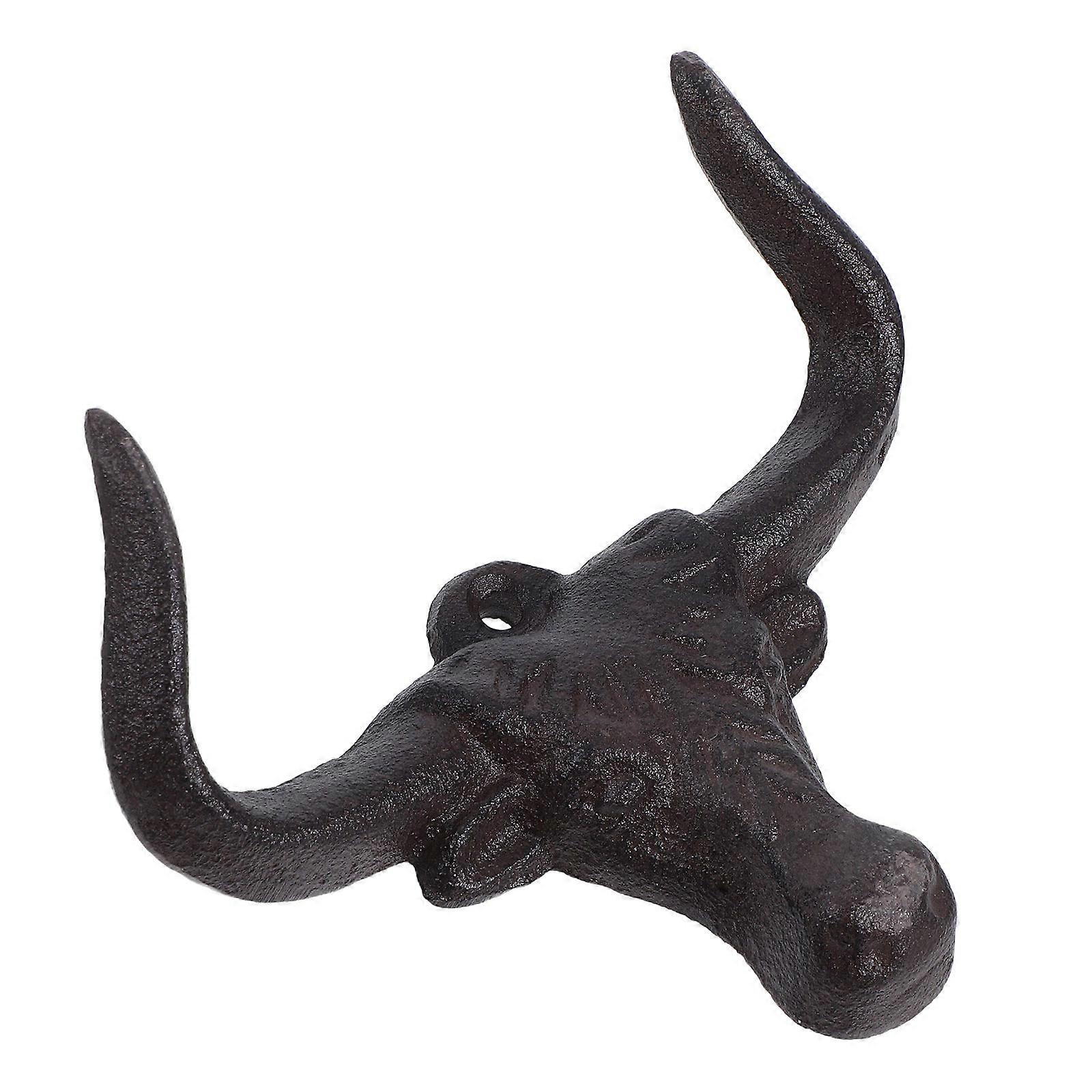 Hanging Rack Hooks Cast Iron Hooks Bull Head Western Decorative Towel Rack For Bathroom Entryway Closet Wall Decor Dark Brown 1Set