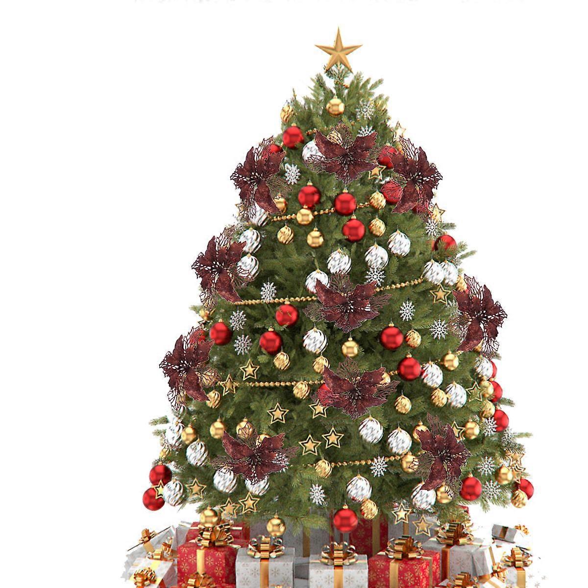 Hanging Ornament Dark Coffee Christmas Tree Decorative Flower Ornaments Glitter Powder 1 Set
