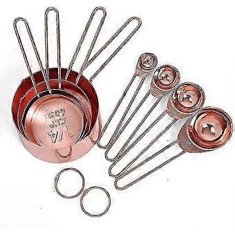 Stainless Steel Measuring Cups And Spoons Set Of 8 Engraved Measurements, Metal Measure Sets With Ring For Kitchen Baking Cooking Rose Gold - FFY