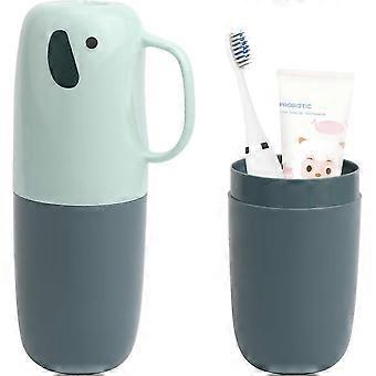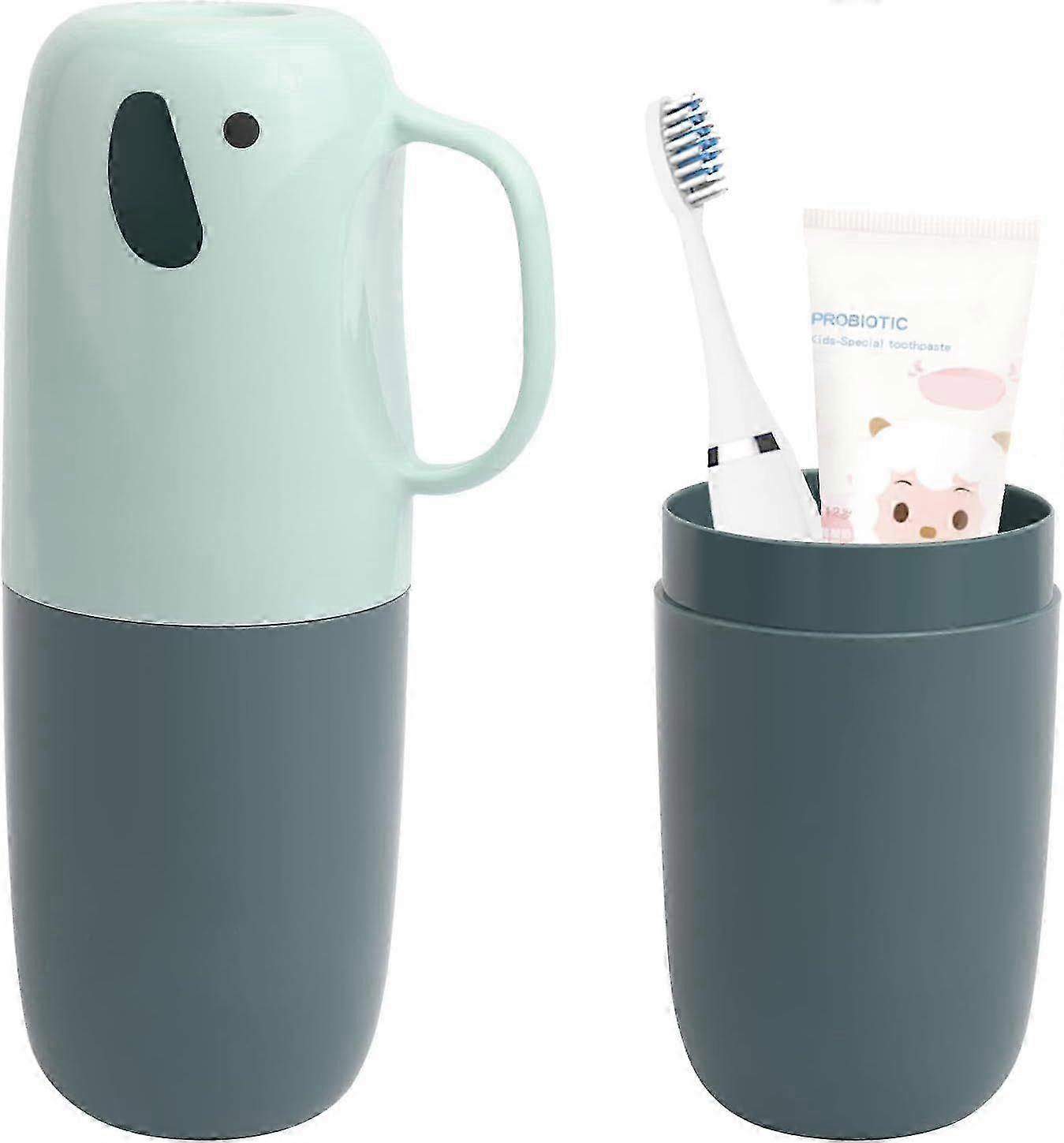 Elephant-Shaped Travel Toothbrush Cup with Antibacterial Case for Families Camping and School - Blue