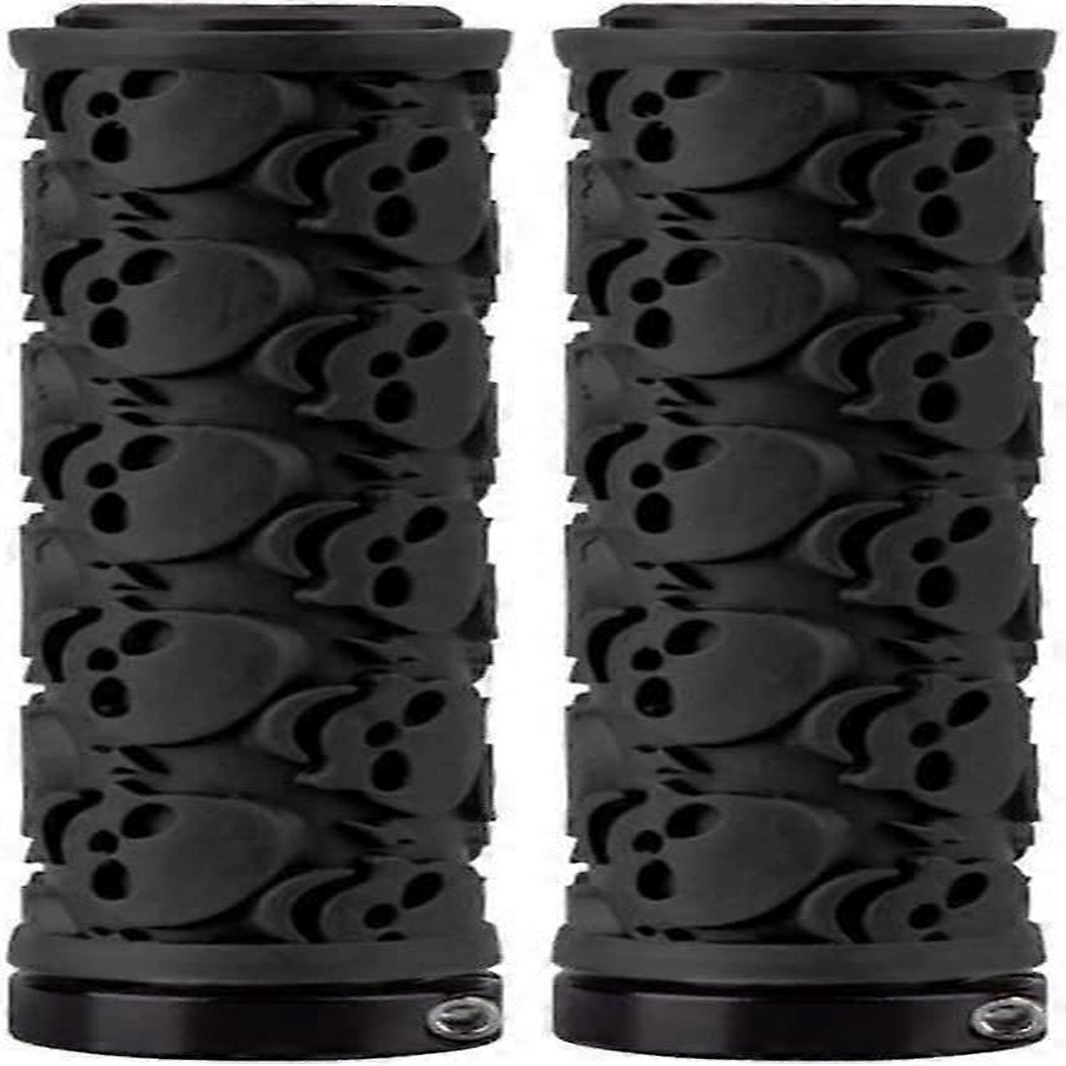 Bike Handle Grips Antislip Skull Carved Rubber Bicycle Handle Coverblack