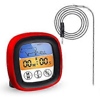 Handle waterproof probe, barbecue thermometer timer touch screen barbecue thermometer kitchen color screen food food meat alarm