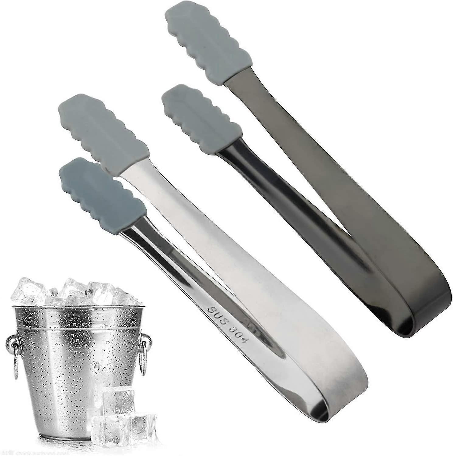 Ice Tongs, 2 Pcs Sugar Tongs, Silver And Black Ice Cube Tongs 13.3 X 1.6 Cm Stainless Steel Sugar Ice Tongs With Non-slip Silicone Head For Family Res