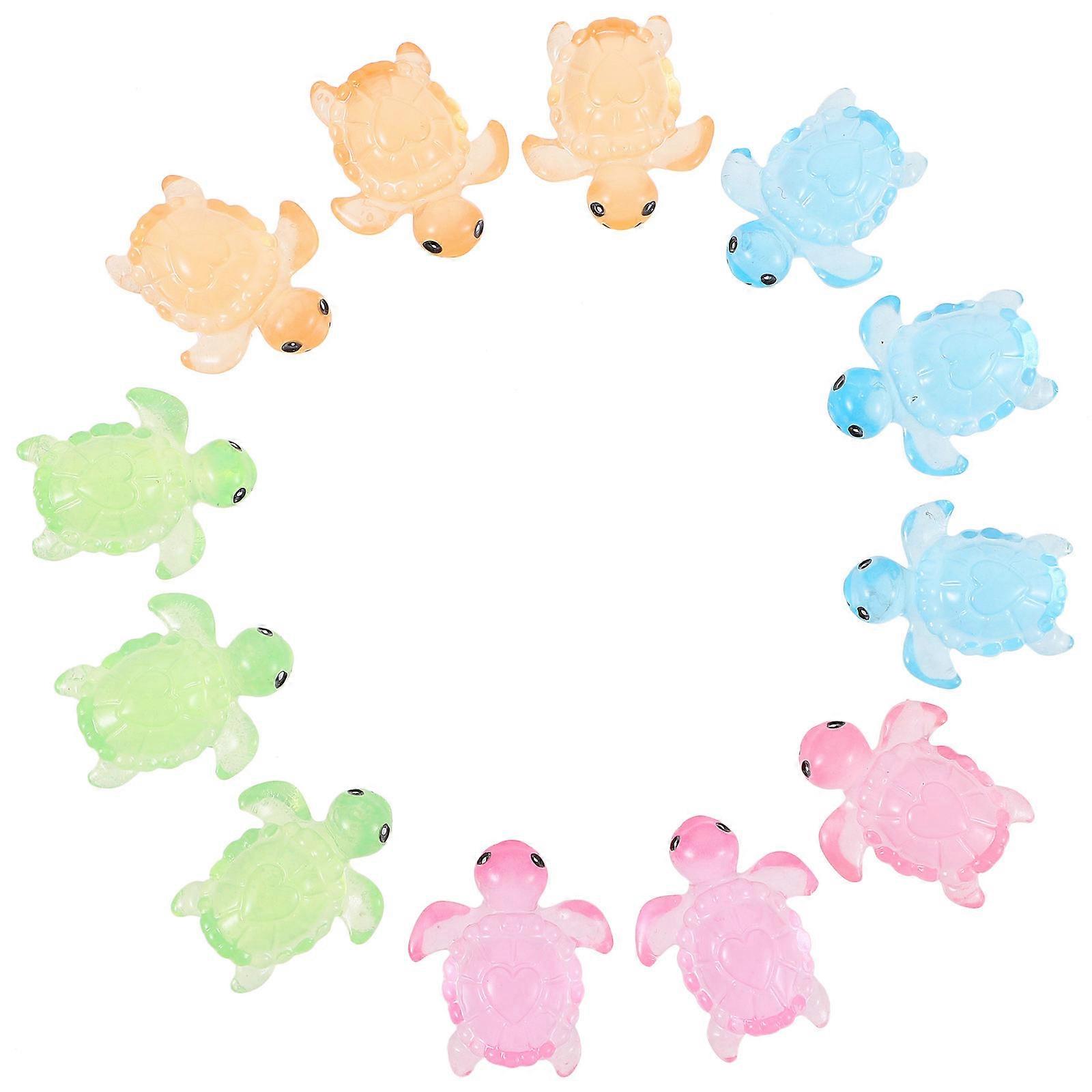 Glowing Mini Turtle Figurines 12 Pcs Vibrant Ornament Set for Fish Tanks, Home Decor & Micro Landscapes