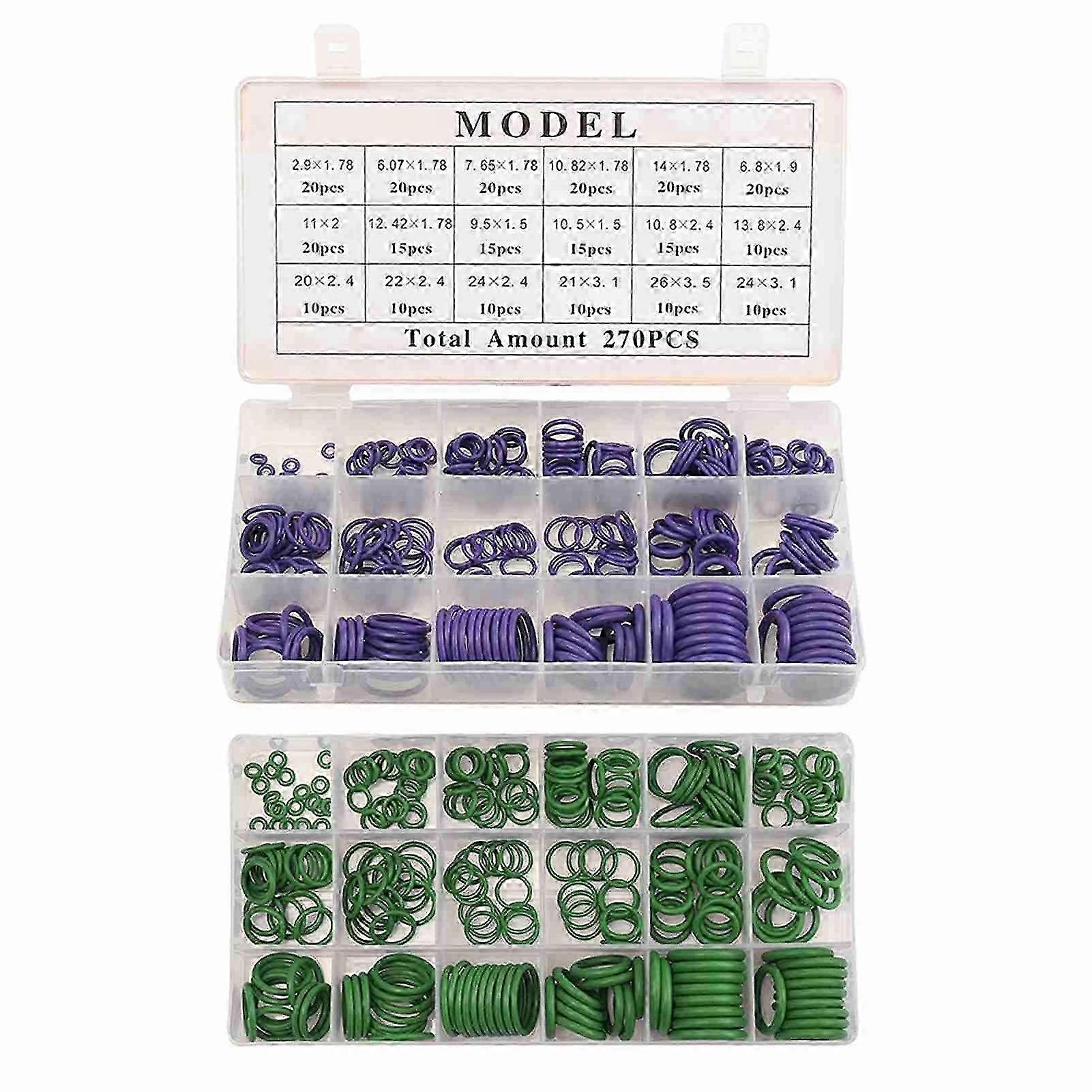 Rubber O-Ring 270Pcs R134A Car Airconditioning Sealing Set Rubber O-Ring Washer Seals with Plactics Box Kit