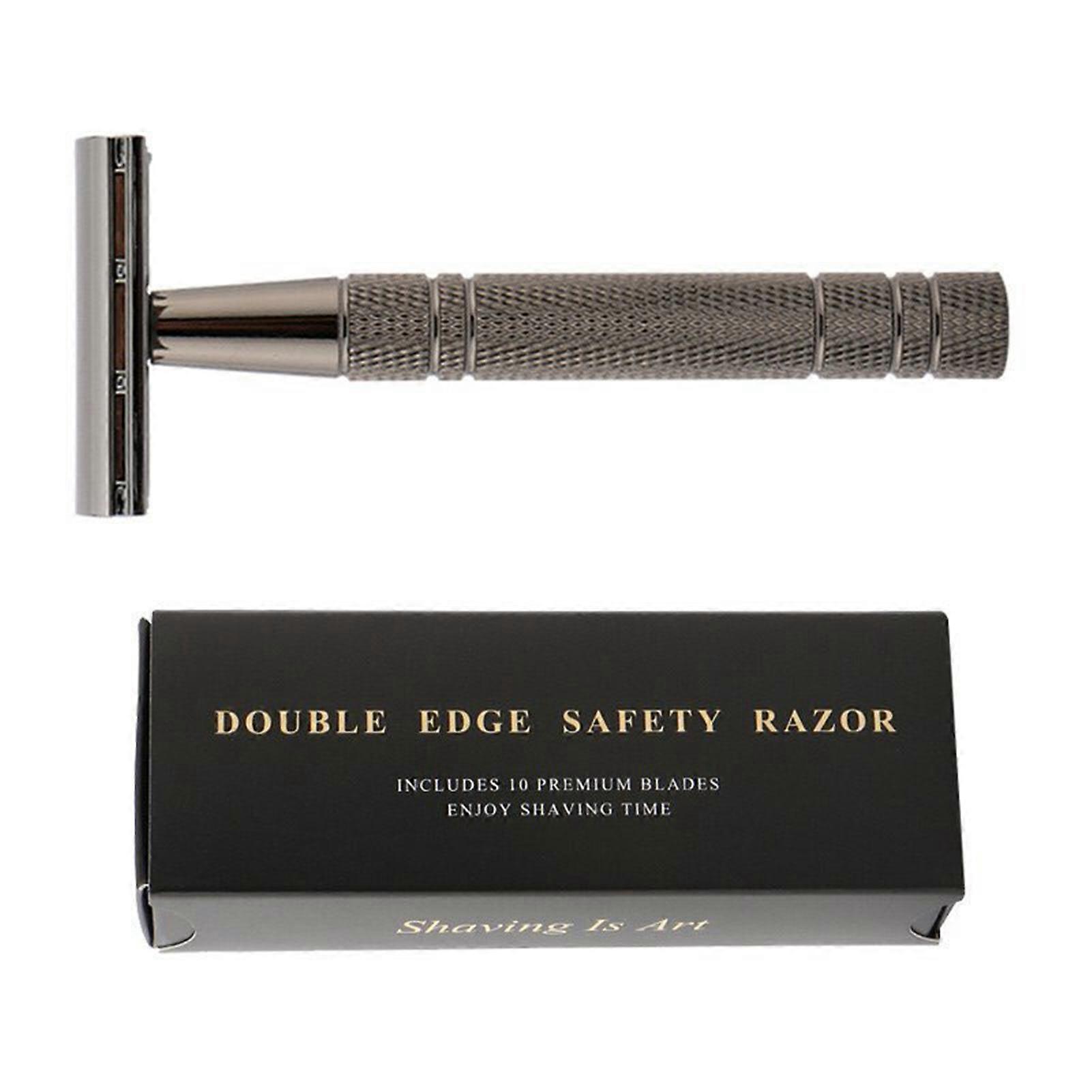 Double Edge Safety Trimmer Matt Black 10pcs Blades 4.16x10.3cm