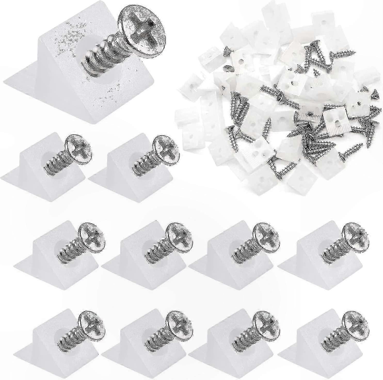 White Plastic Cabinet Drawer Reinforcement Wedges with Screws, 80pcs Corner Stabilizers for Furniture Repair