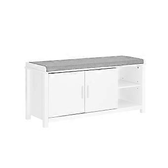 Λευκός πάγκος αποθήκευσης διαδρόμου με μαξιλάρι καθίσματος και 2 συρτάρια, πάγκος παπουτσιών Ντουλάπι παπουτσιών Ράφι παπουτσιών με ρυθμιζόμενα ράφια στις πόρτες, SoBuy FSR168-W