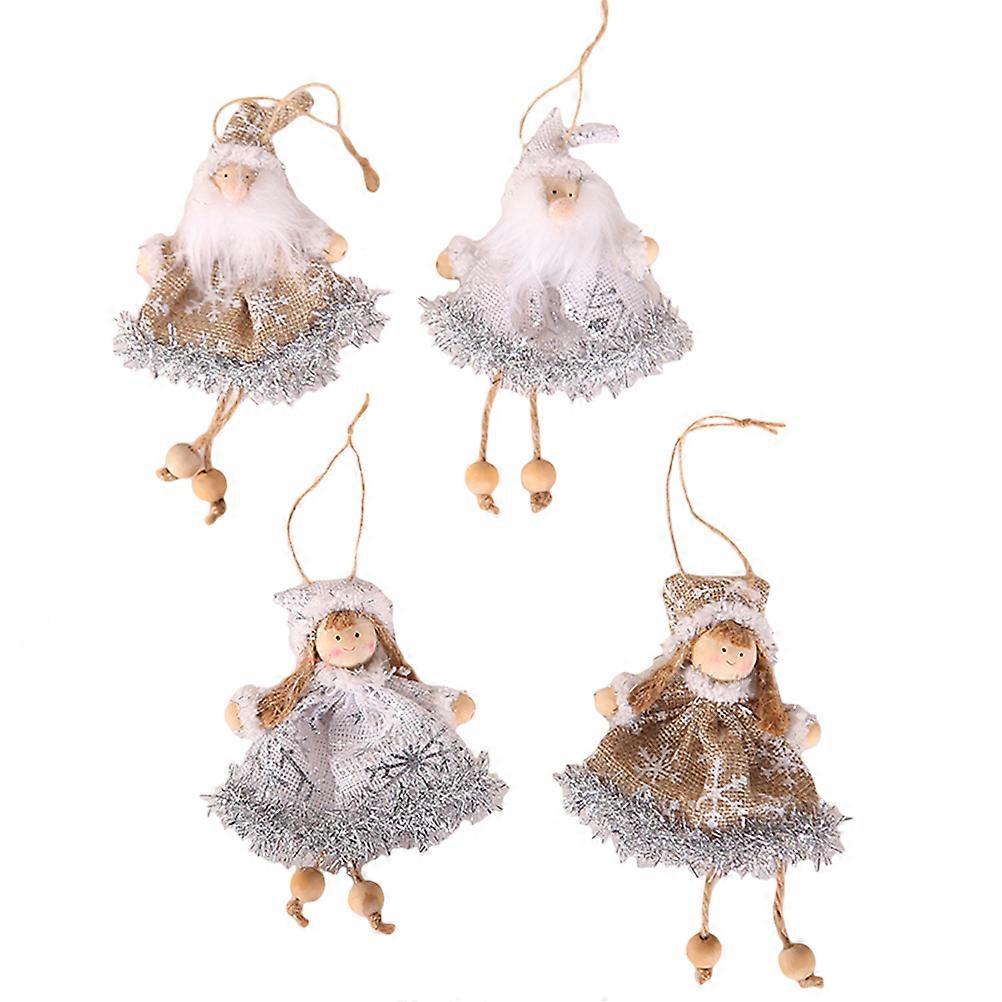 Christmas Style Angel Pendant Tree Decorations White 13x8.5cm Fabric Material For Home And Store 4Pcs
