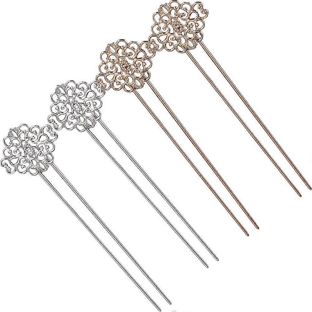 Flower U Shaped Metal Hairpin Chinese Vintage Hair Bun Pin For Women Daily Wearing Prom 4Pcs