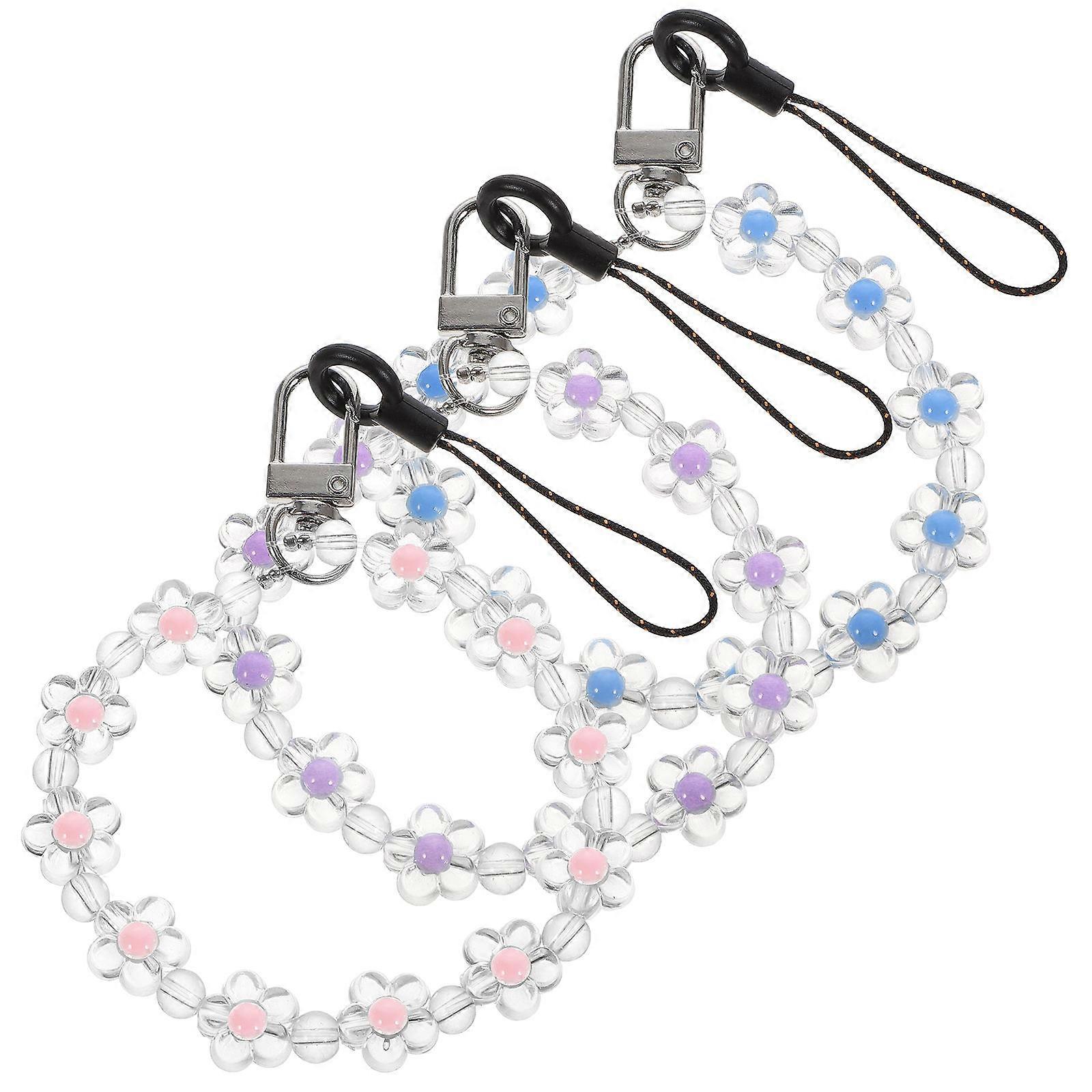 Flower Beaded Cell Phone Lanyard Girls Outdoor Activities Acrylic Decoration 3Pcs