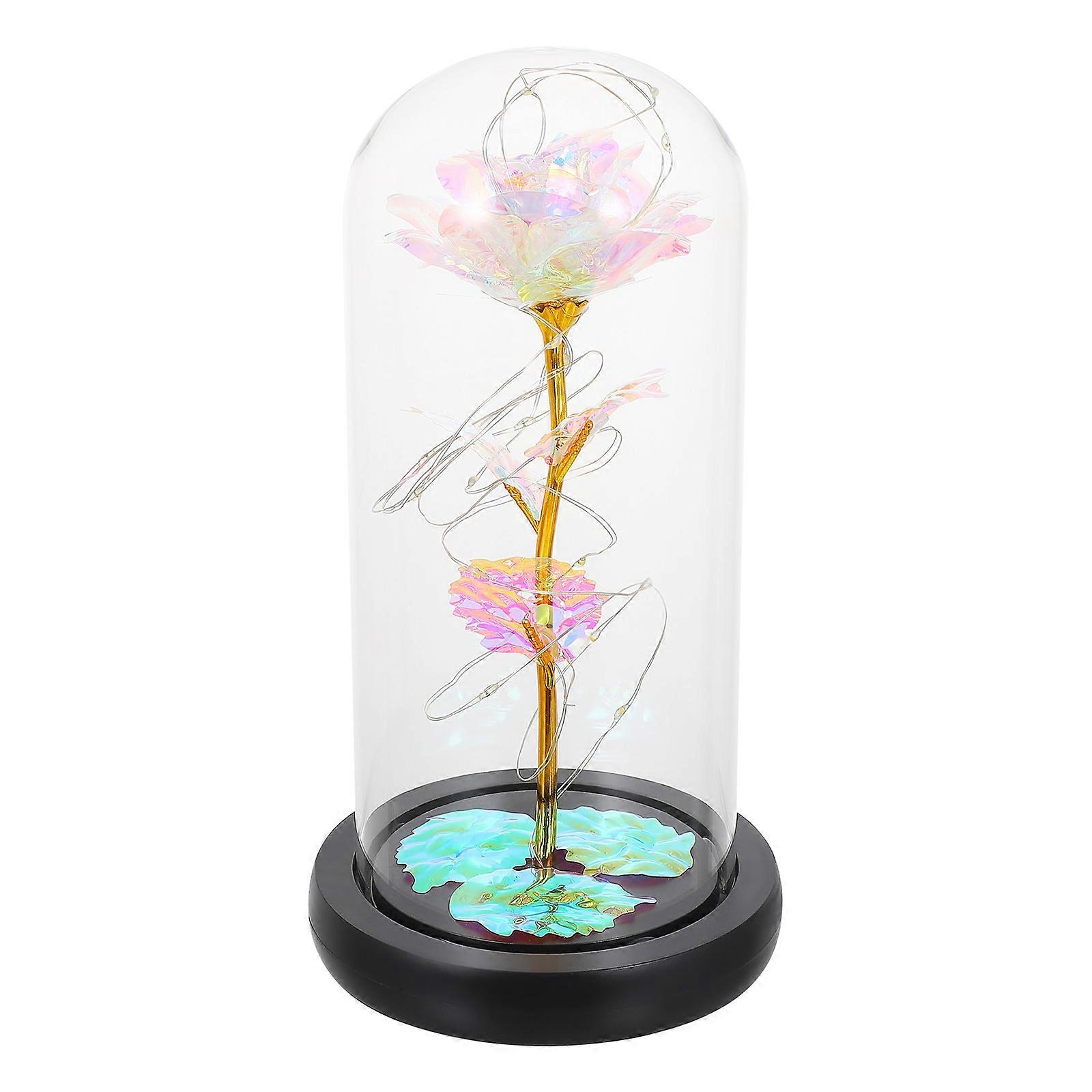Flower LED Light Rose Glass Dome Decoration Use 2Pcs Gift