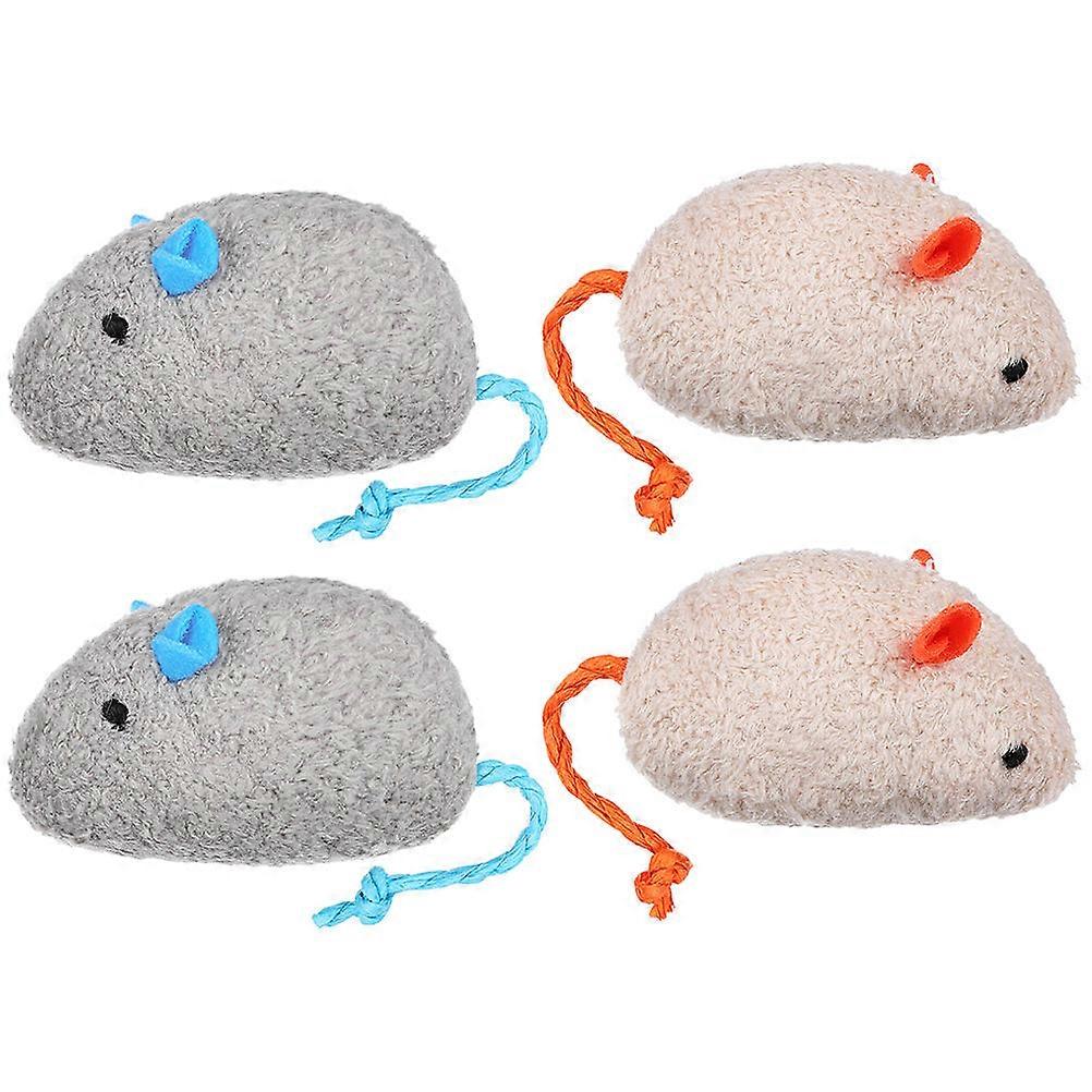 Plush Mice Cat Biting Toys Stress Relief Pet Supplies Beige 4Pcs