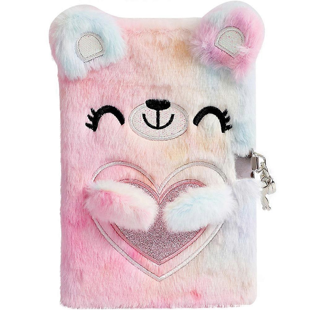 Plush Cartoon Bear Diary Notebook with – Lightweight Portable Journal for School, Travel, Birthday Gift – Tie Dye Notepad