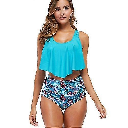 Swimsuits For Women Two Piece Bahting Suits Double Ruffled Swim Top High Waisted Bottoms Swimswear Bikini