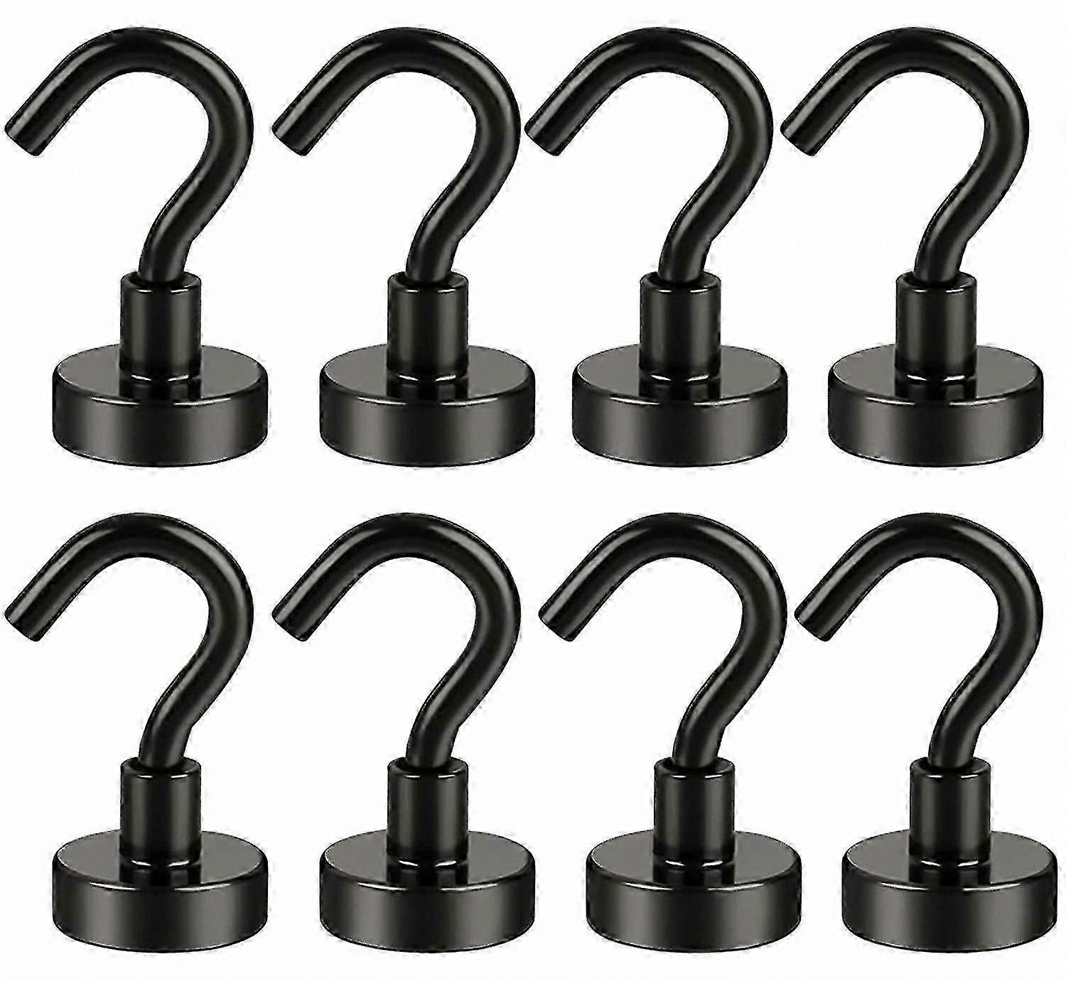 Heavy Duty Magnetic Hooks, 8 Pack Black Metal Hangers for Refrigerator, Strong 22 Lbs Magnets for Hanging Items, Multi-Purpose Utility Hooks