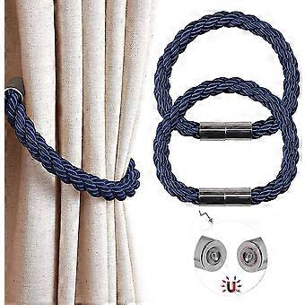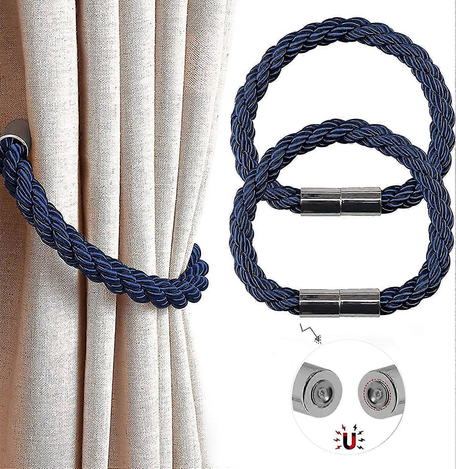Magnetic Curtain Tie Backs, 2 Pack Modern Simplicity Curtain Rope Holdbacks With Strong Magnet, Braided Rope Curtain Holder Decoration(blue)