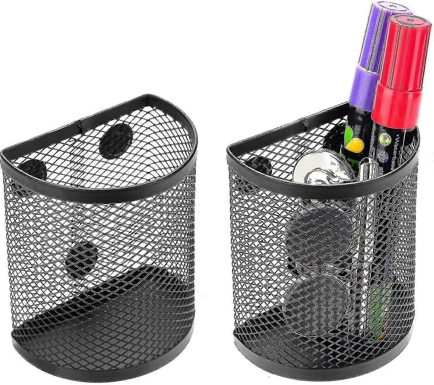 Magnetic Pencil Holder, 2 Compartments Mesh Stainless Steel Pen Basket, Metal Writing Utensil Storage Organizer For Whiteboard,blackboard,kitchen, Or