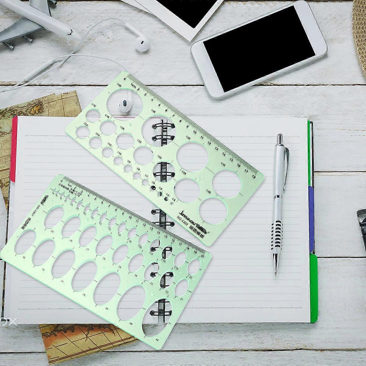 Math Geometry Rulers Geometric Template Rulers School Learning Office Work Green Plastic Drawing Templates 2Pcs
