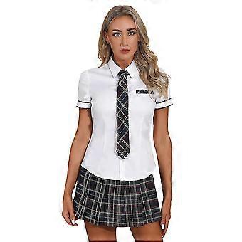 Women's Schoolgirl Cosplay Costume Uniform Mini Pleated Skirt with Oxford Tie Shirt