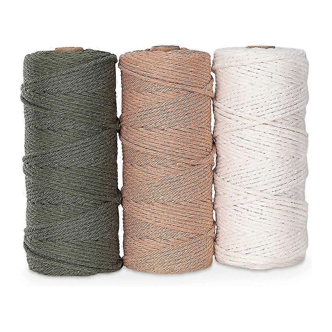 Macrame Cotton Cord for DIY Projects, Tapestry & Dream Catcher Making - 3mm Natural Craft Rope (White, Olive Green)