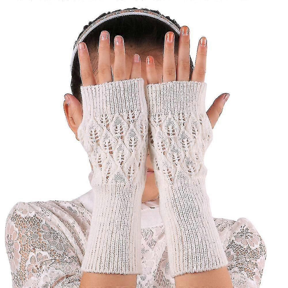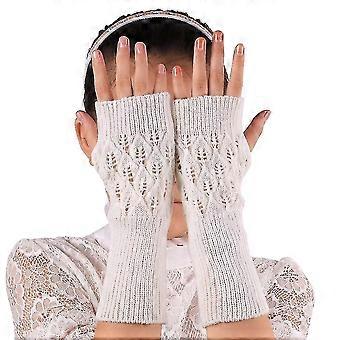Women's Long Hand Embroidered Gloves Knitted Warm For Winter Fingerless