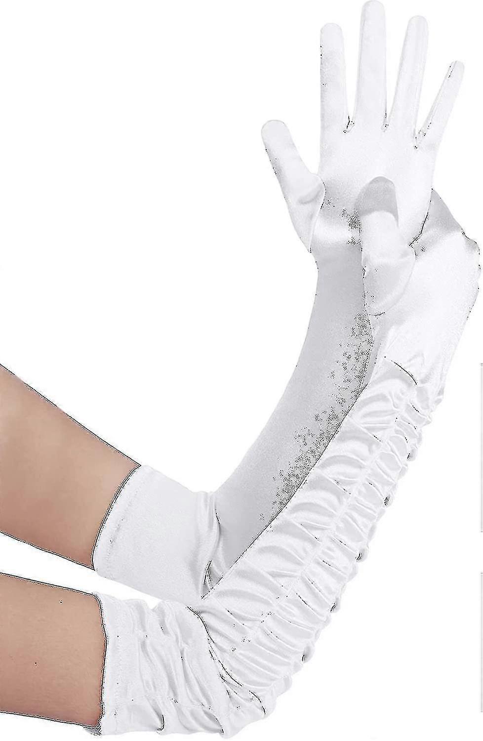 Long Opera Party 20s Satin Gloves Stretchy Adult Size Elbow Length