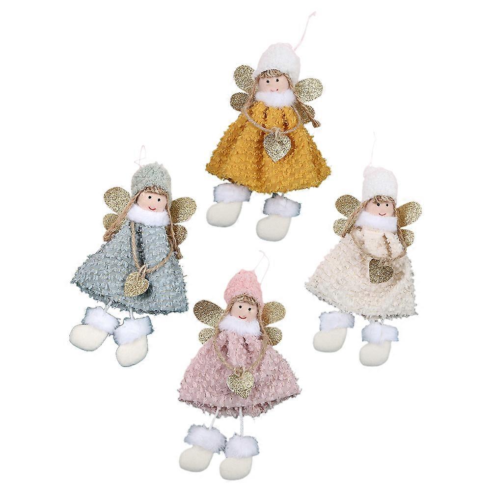 Soft Plush Angel Doll Christmas Ornaments Cute Xmas Tree Pendants in Beige, Blue, Pink, Yellow Decorative Hanging Charms for Holiday, Wedding,