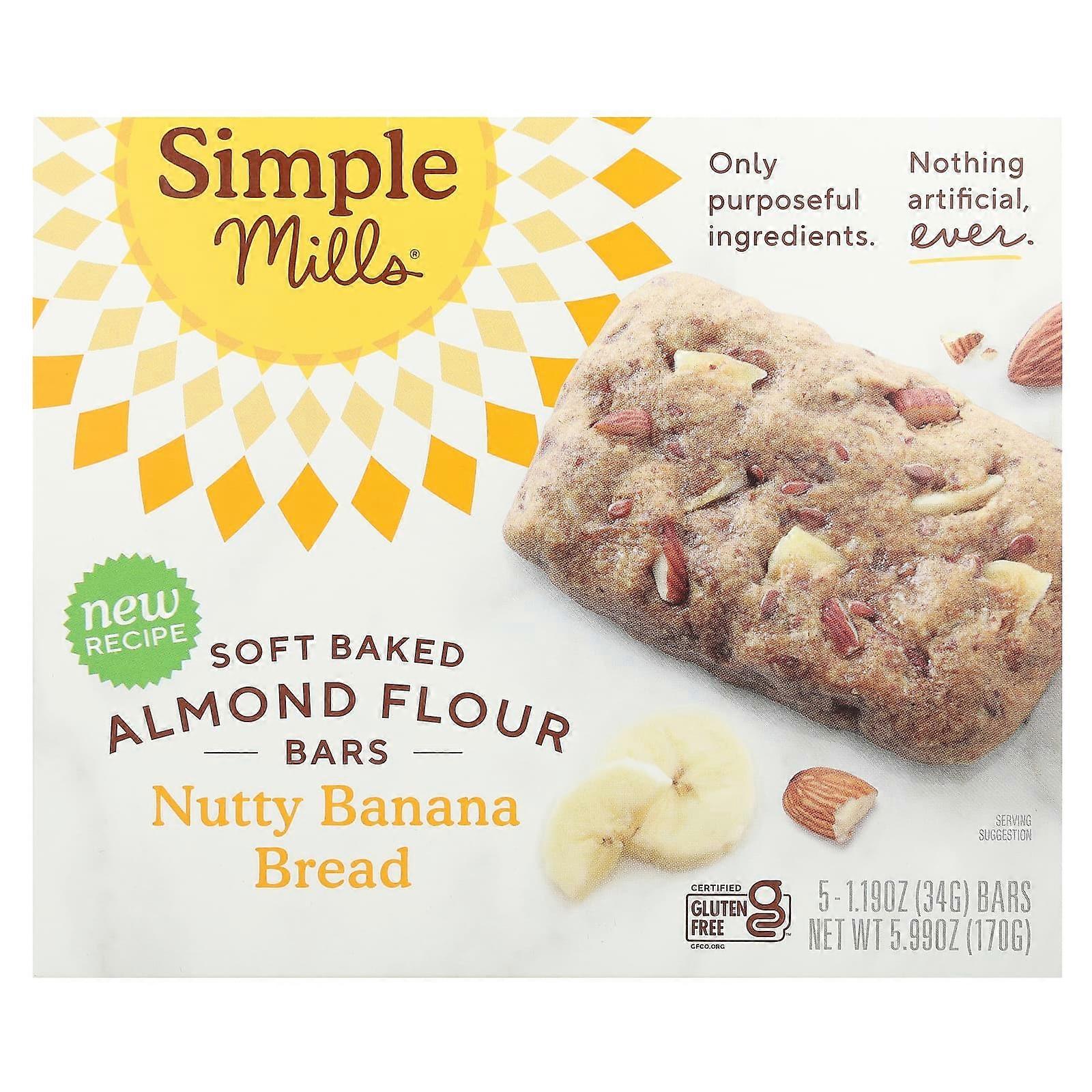 Soft Baked Almond Flour Bars, Nutty Banana Bread, 5 Bars, 1.19 oz (34 g) Each
