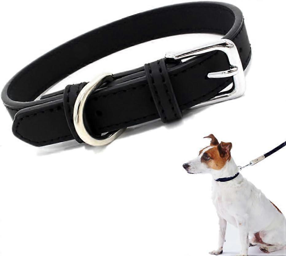 Soft Dog Collar Adjustable Leather Puppy Collar Adjustable Basic Dog Collar Pet Collar for Puppy and Small Dogs (Black, XS)
