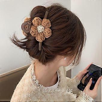 Woolen Flower Hair Claw Woman Elegant Retro Shark Hair Clip Weave Flowers Ponytail Crab Claw Hair Accessories