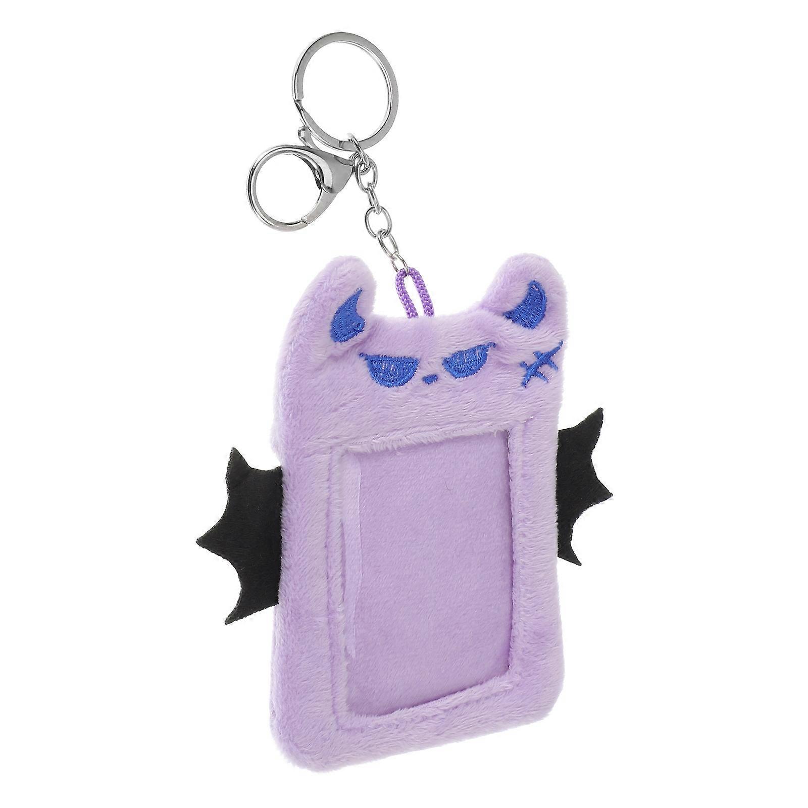 Cartoon Card Sleeve Plush Photocard Holder Keychain for Students Fans Lavender Plush Material Card Protection 1Pack