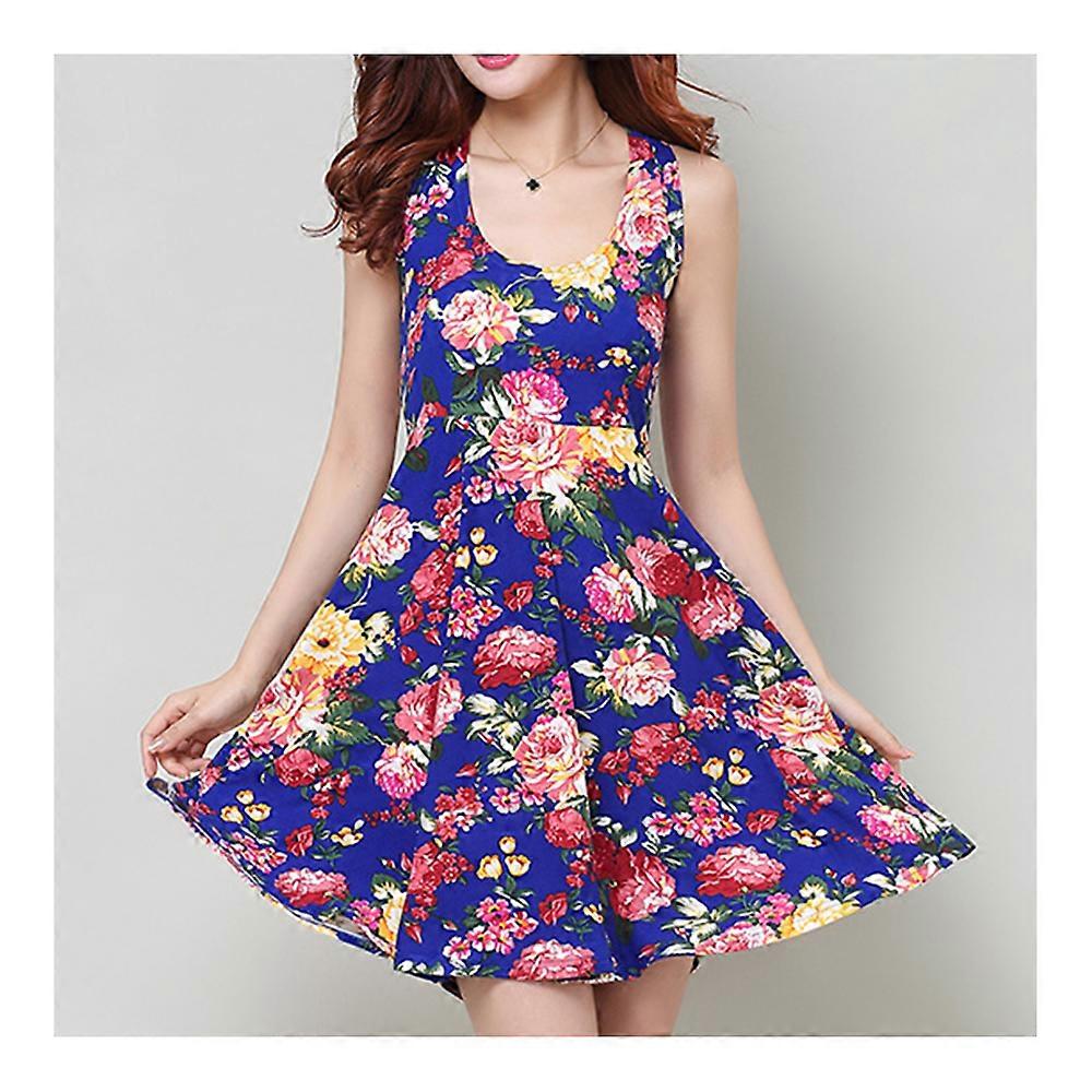 Sleevelss Round Collar Vintage Slim Printing Vest Dress