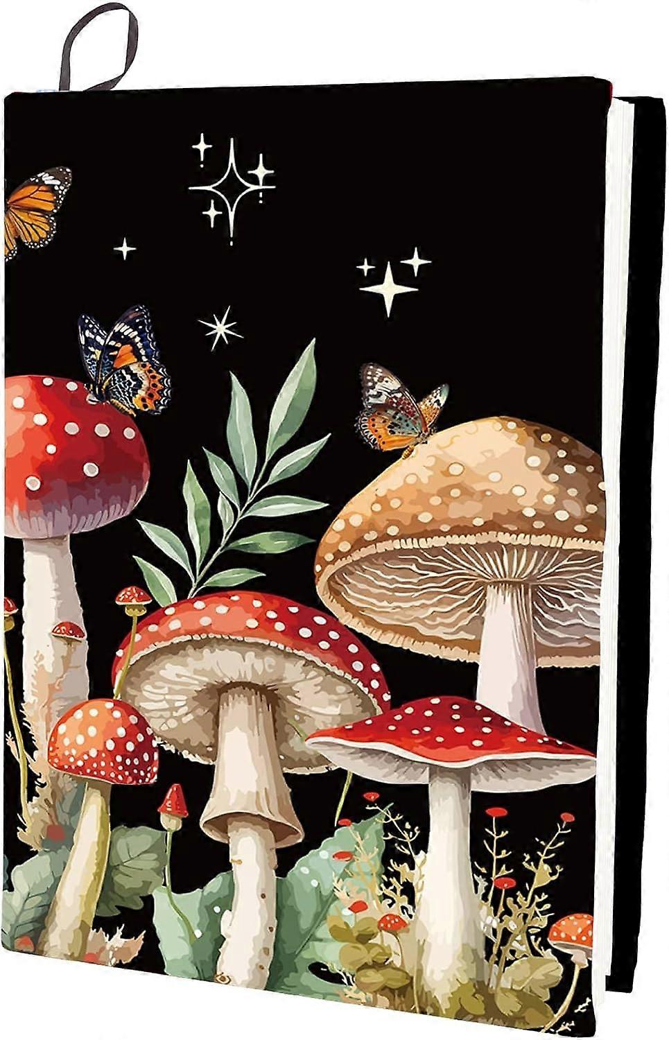 Mushroom Stretchable Book Cover Butterfly Plant Washable Reusable Large Nylon Book Protector 9.4x15.7 Inch Elastic Notebook Wraps Suitable for Most Ha