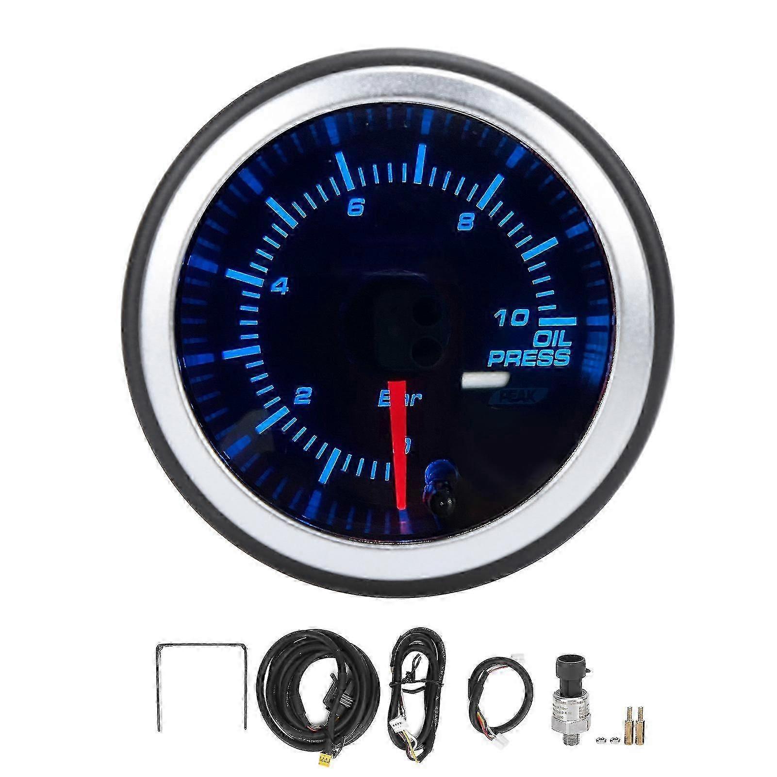 Oil Pressure Gauge with Sensor 10 Color LED 010Bar Pointer Display Universal for 12V Vehicle