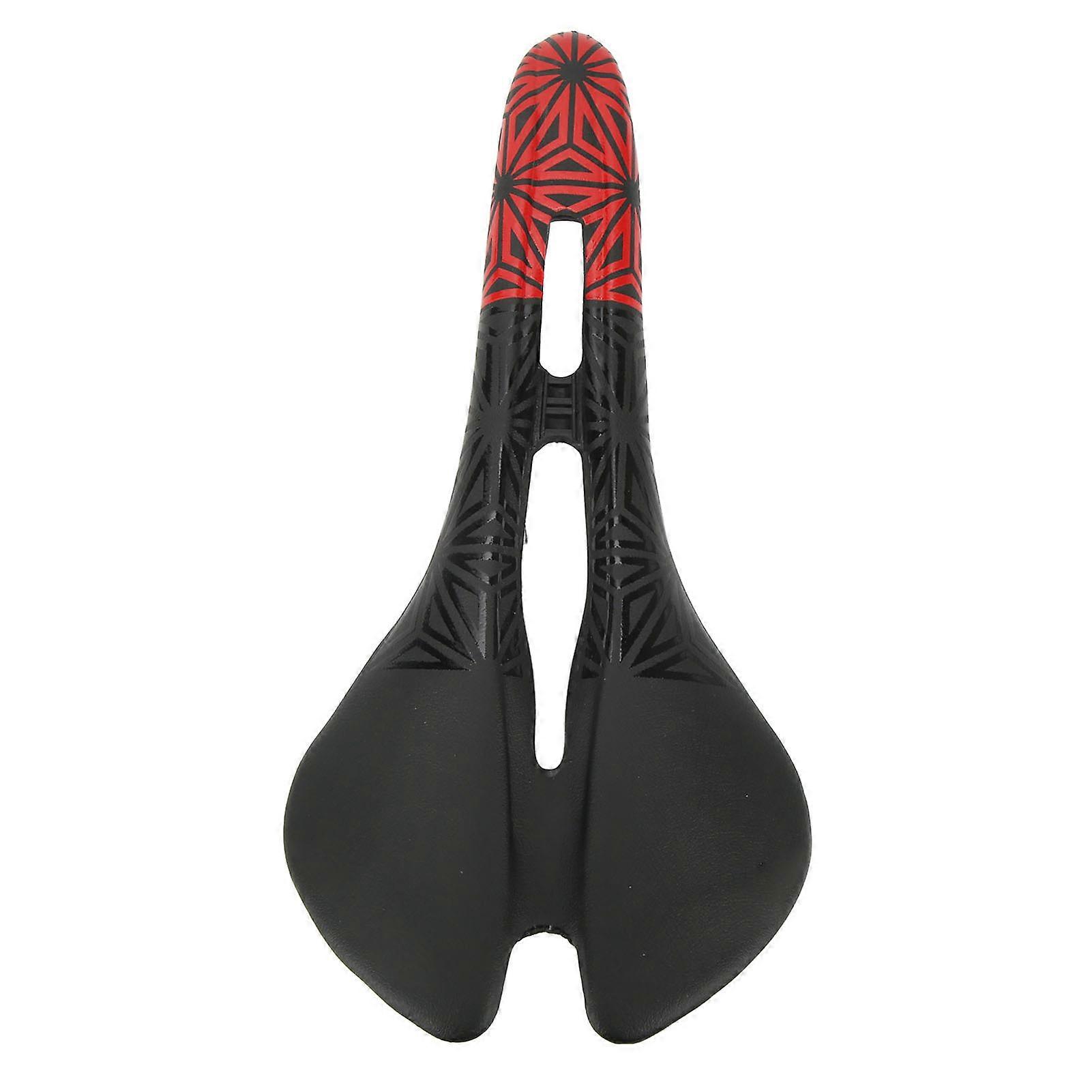 Bike Seat Cushion Shock Absorbing Microfiber Leather Hollow Breathable Wrapped Steel Bow Nylon Bottom Bike Saddle Black Red