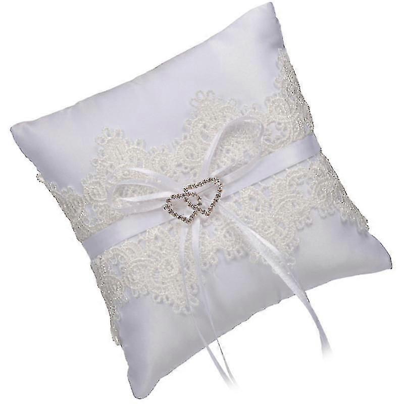 Wedding Ring Pillow Cushion Bridal Crystal Lace Ribbon Bowknot Decorated Ring Bearer Pillow