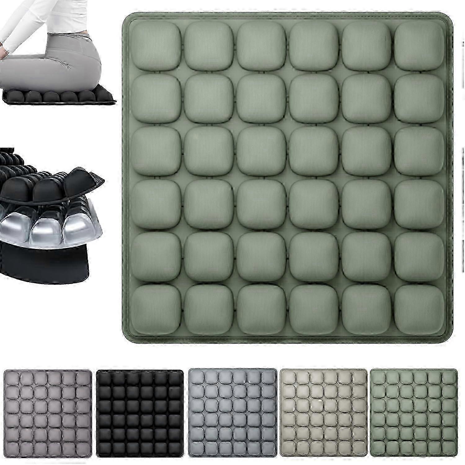 Travel Cushion 3D Air Cell Inflatable Portable Seat Cushion For Airplane Car Wheelchair Green 36 Airbags