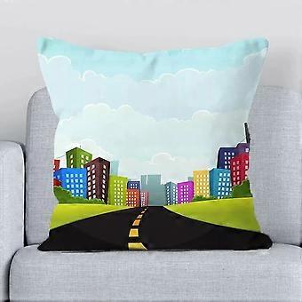 Pillow Cases Cotton Linen Office Home Decoration Sofa Pillowcase City Road Cartoon Decorative Pillowcase Sofa Cushion Pillowcase