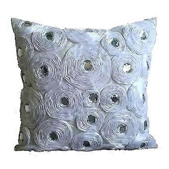 Pillow Cover 20x20 White, Ribbon Rose Flower Floral Theme, 50x50 cm Square Silk Pillow Case, Modern White Heaven